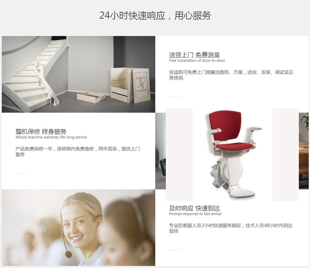 乘坐楼梯升降椅非常的容易方便。你只需坐下来,按动扶手上的按纽,座椅便开始移动。缓慢平稳地运行,非常流畅。当手一