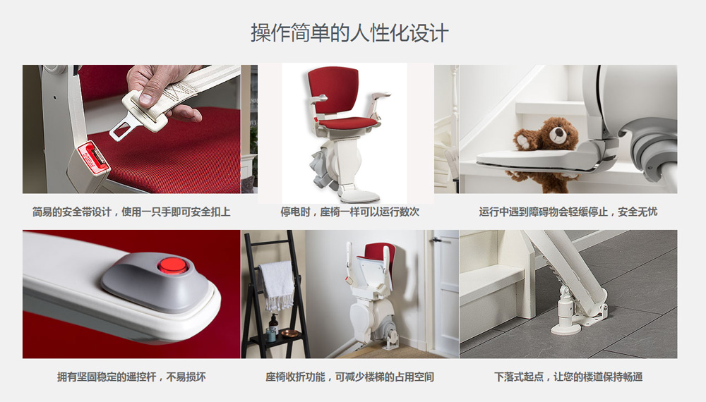 座椅电梯是一种运行在楼梯侧面的一种电梯,有直线和曲线座椅电梯,主要作用是帮助行动不方便的人上下家里的楼梯。